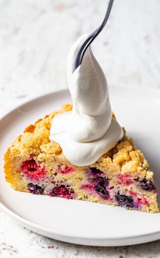 Triple Berry Buckle With Malted Milk Whipped Cream!